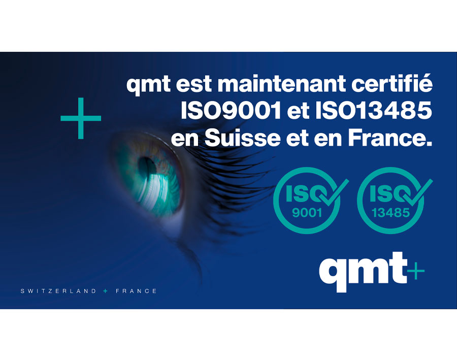 qmt est maintenant certifié ISO9001 et ISO13485 en Suisse et en France
