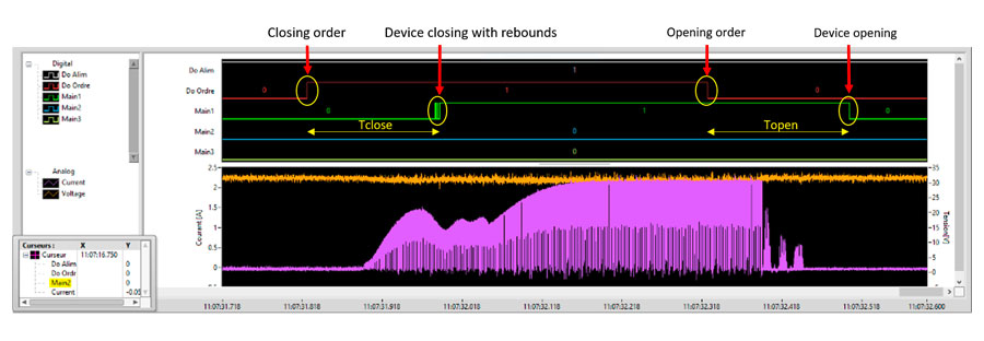 En collaboration directe avec Sécheron, un système d’acquisition et de mesure de précision des grandeurs électriques associées à la bobine du contacteur a été développé afin de garantir la qualité des produits livrés à la clientèle.