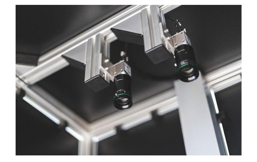 Pour contrôler l’ensemble de la clayette, le système utilise deux caméras positionnées en dessus de la clayette à contrôler. Chaque caméra couvre un champ de vue d’environ 235 (largeur) * 270 (hauteur) mm, une contrôle la partie gauche de la clayette et l’autre la partie droite. Un recouvrement des deux champs de vue des caméras permet de contrôler l’ensemble de la clayette (une pièce doit être visible dans son intégralité dans une image).