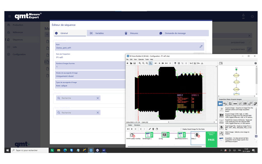 • Configuration de la méthode de mesure d’une famille de pièces, cette méthode est composée de la séquence de traitement, de la communication, de l’affichage des résultats dans l’image, de la définition des mesures à réaliser et de la formule de décision