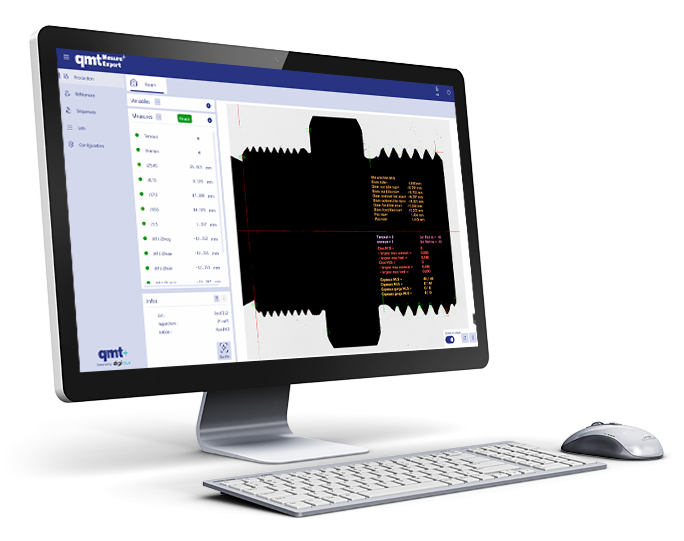 qmt réalise des solutions intégrant la vision industrielle depuis 35 années. Une première génération de logiciel standard a été développée en 2007 (qmt vision inspector), elle a été suivie par une deuxième génération en 2016 (qmtmesure). qmtmesure permet la réalisation de solutions mono ou multi-caméra qui peuvent être surfacique ou linéaire. Il intègre des capacités avancées de communication et synchronisation avec l’environnement extérieur afin de garantir un haut niveau d’intégration.