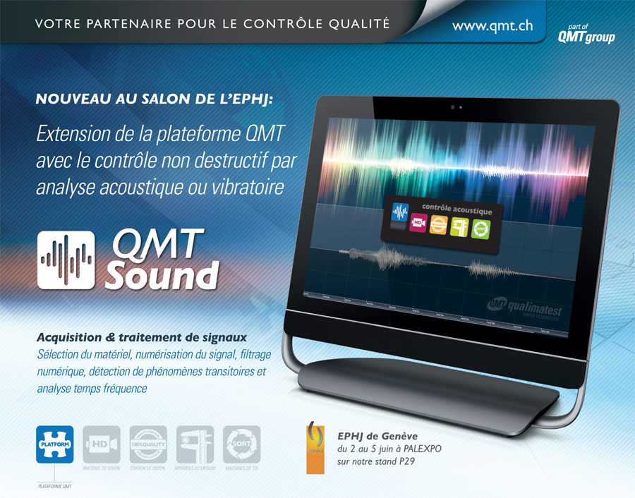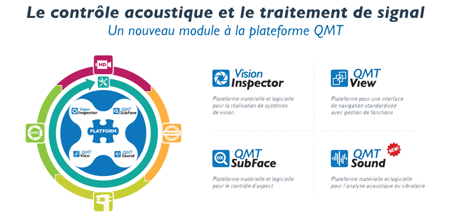 QMTSound étend la capacité des systèmes de contrôles de qualité de Qualimatest, ils peuvent maintenant être optique avec QMT Vision Inspector, acoustique avec QMTSound ou combiner les deux.